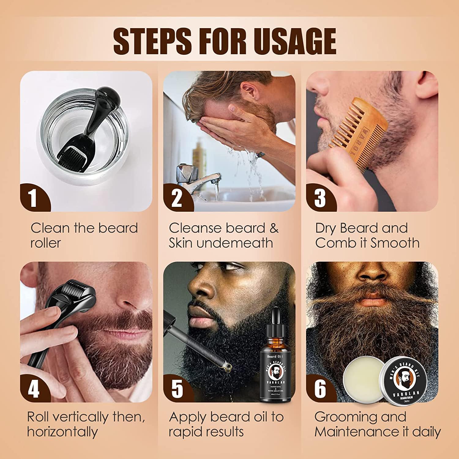 4pcs/set Beard Growth Kit Hair Enhancerbeard Essential Oil Moisturizing Hair Wax Roller Comb For Men Barbe Beard Styling Care
